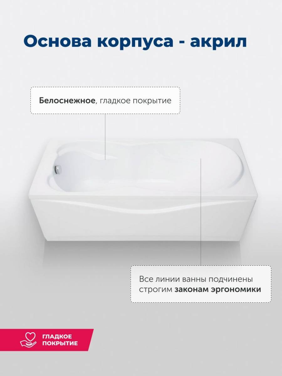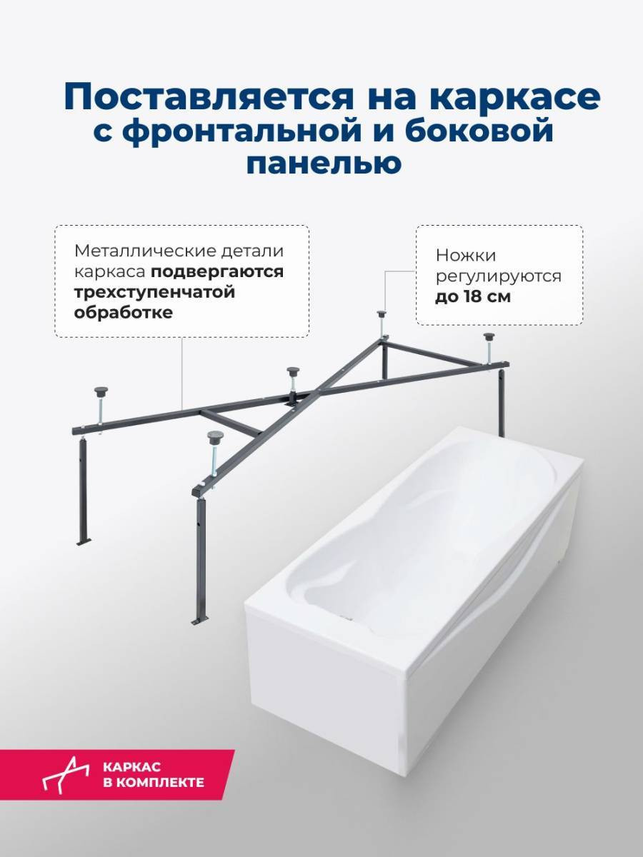 Обратите внимание, что это комплект: акриловая ванна, каркас, фронтальная и боковая панели. Акриловая ванна Aquanet Viola 180x75 - это маленькое море в белоснежных акриловых берегах, которое уместится в ванной комнате, где найдется свободное место размером 180х75 см. Глубина ванны от слива до борта составляет 453 мм. Она вмещает 227 литров воды. Для изготовления ванны Viola использован сантехнический акрил толщиной 4 мм. Изделие укреплено армированием в несколько слоев стеклоровинга, благодаря которому оно надежно и без труда выдержит нагрузку в 300 кг.