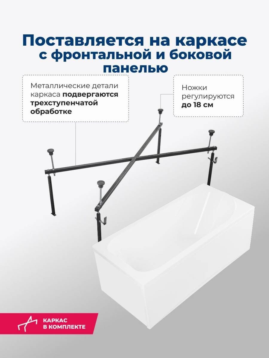 Обратите внимание, что это комплект: акриловая ванна, каркас, фронтальная и боковая панели. Акриловая ванна Aquanet West 130x70 — прекрасный выбор модели эконом-класса. На первый взгляд она напоминает своей формой модели Nord. Тот же эргономичный силуэт с рассчитанным углом наклона задней стенки, которая позволяет удобно расположиться в ней даже человеку высокого роста. Тот же специальный выступ для подголовника, те же компактные площадки по углам ванны, которые можно приспособить под размещение банных принадлежностей. И та же белоснежная поверхность сантехакрила, которая роднит все ванны Aquanet. И все же разница есть. Она дешевле. Причем, на низкую цену повлияли вполне объективные вещи. Так, для изготовления ванны West использован акрил толщиной 4 мм, что всего на 1 мм меньше, чем остальные модели. Также ее глубина на 5 см меньше, чем у ближайших родственников из коллекции Nord.