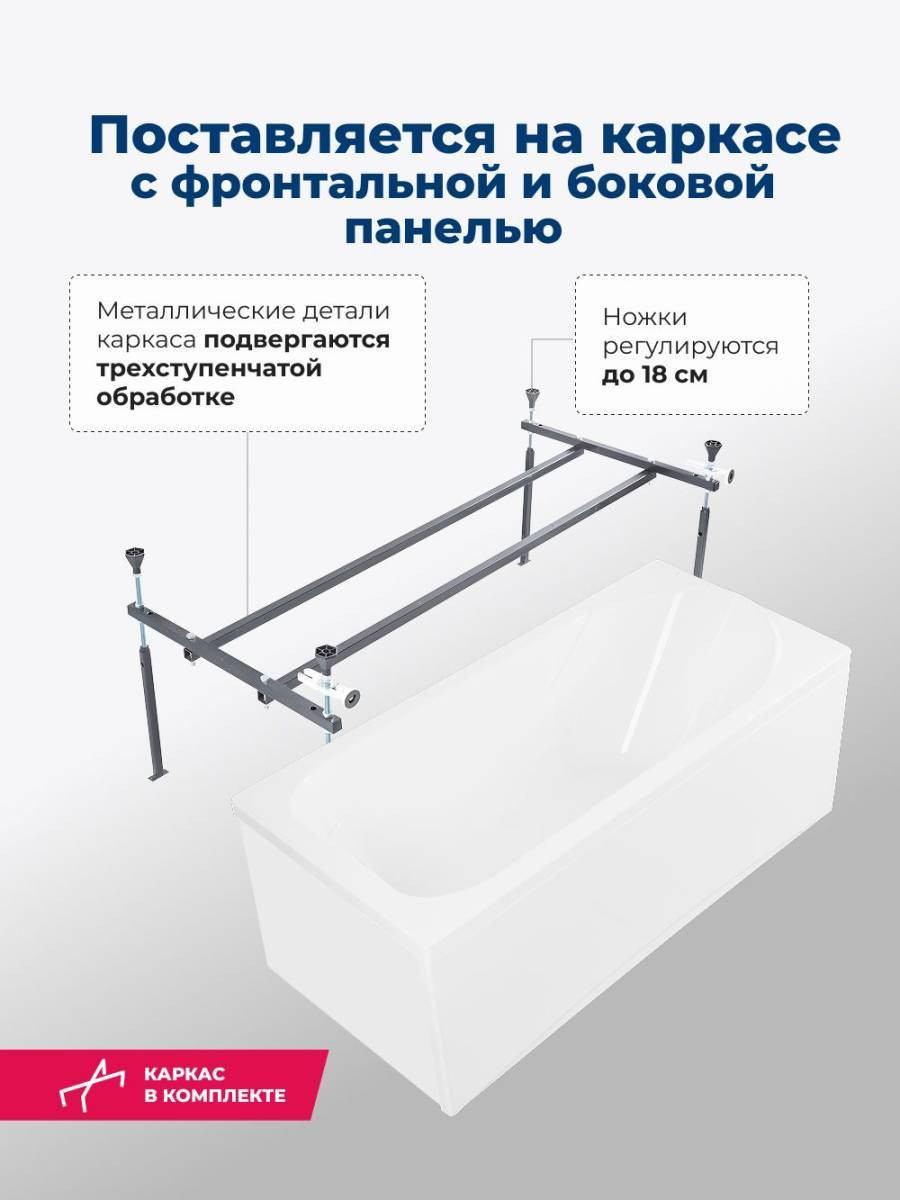 Обратите внимание, что это комплект: акриловая ванна, каркас, фронтальная и боковая панели. Акриловая ванна Aquanet West 150x70 — прекрасный выбор модели эконом-класса стандартного размера. На первый взгляд она напоминает своей формой модели Nord. Тот же эргономичный силуэт с рассчитанным углом наклона задней стенки, которая позволяет удобно расположиться в ней даже человеку высокого роста. Тот же специальный выступ для подголовника, те же компактные площадки по углам ванны, которые можно приспособить под размещение банных принадлежностей. И та же белоснежная поверхность сантехакрила, которая роднит все ванны Aquanet. И все же разница есть. Она дешевле. Причем, на низкую цену повлияли вполне объективные вещи. Так, для изготовления ванны West использован акрил толщиной 4 мм, что всего на 1 мм меньше, чем остальные модели. Также ее глубина на 5 см меньше, чем у ближайших родственников из коллекции Nord.