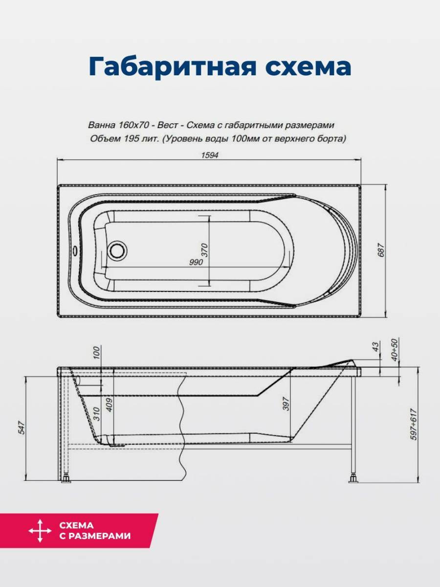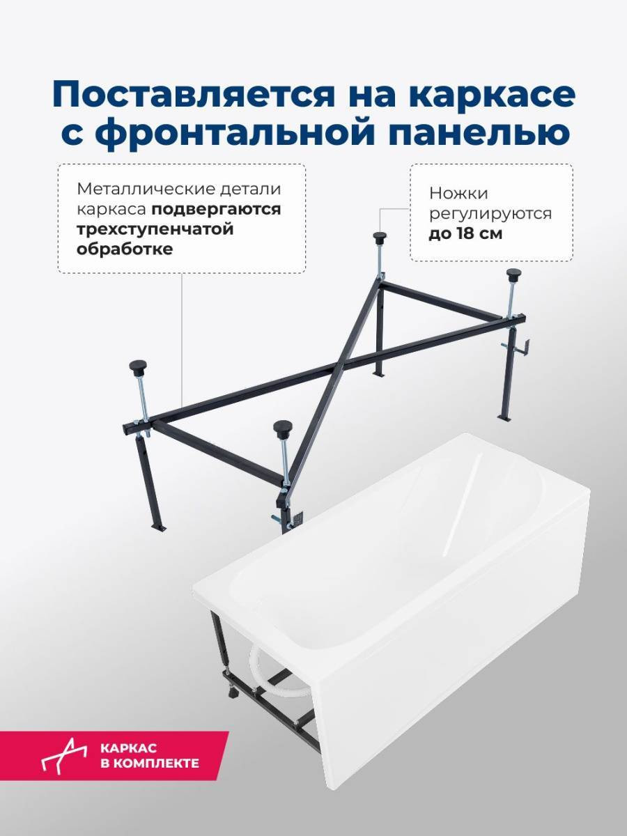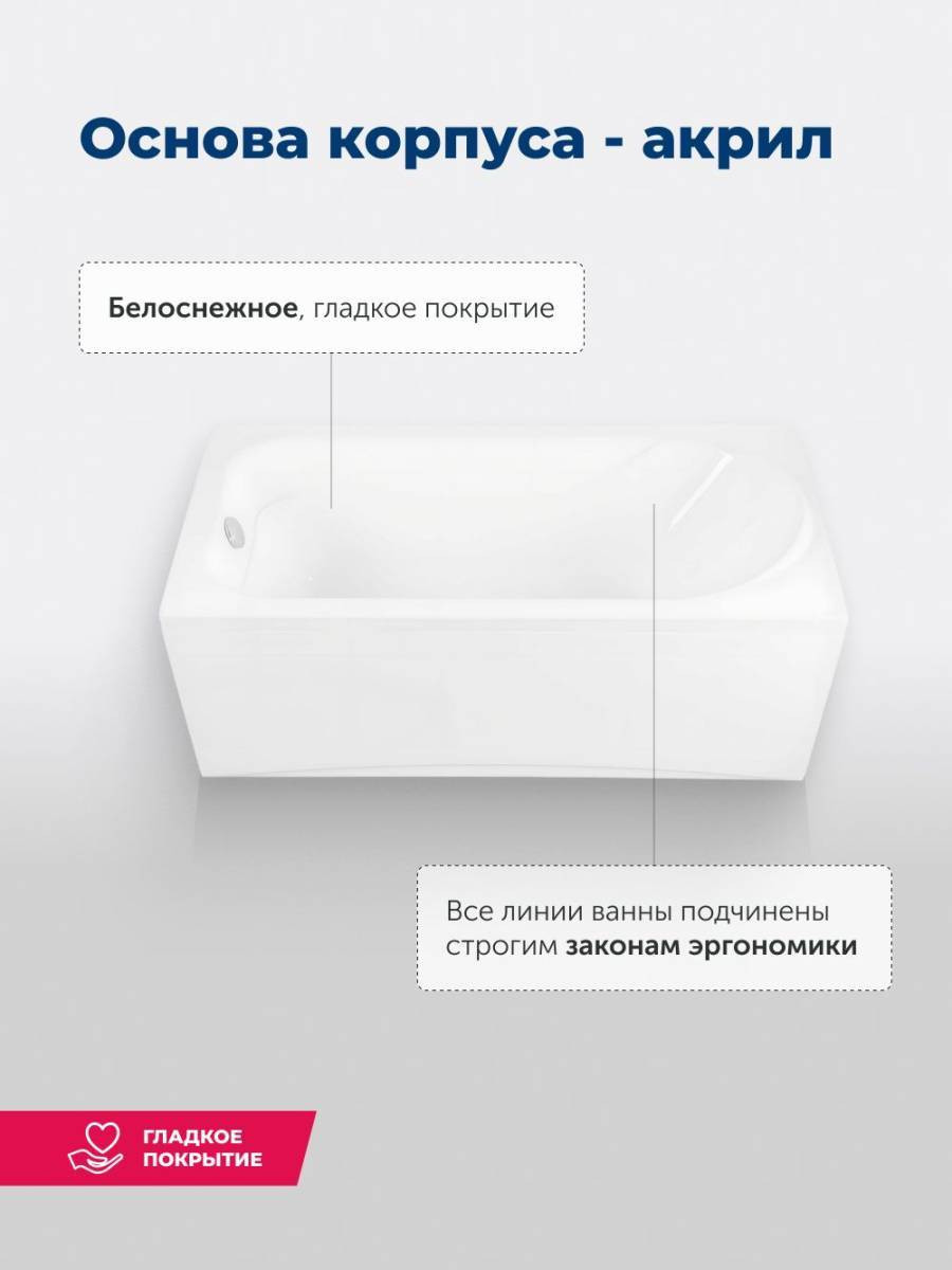 Обратите внимание, что это комплект: акриловая ванна, каркас и фронтальная панель. Акриловая ванна Aquanet West 160x70 — прекрасный выбор модели эконом-класса сраднего размера. На первый взгляд она напоминает своей формой модели Nord. Тот же эргономичный силуэт с рассчитанным углом наклона задней стенки, которая позволяет удобно расположиться в ней даже человеку высокого роста. Тот же специальный выступ для подголовника, те же компактные площадки по углам ванны, которые можно приспособить под размещение банных принадлежностей. И та же белоснежная поверхность сантехакрила, которая роднит все ванны Aquanet. И все же разница есть. Она дешевле. Причем, на низкую цену повлияли вполне объективные вещи. Так, для изготовления ванны West использован акрил толщиной 4 мм, что всего на 1 мм меньше, чем остальные модели. Также ее глубина на 5 см меньше, чем у ближайших родственников из коллекции Nord.