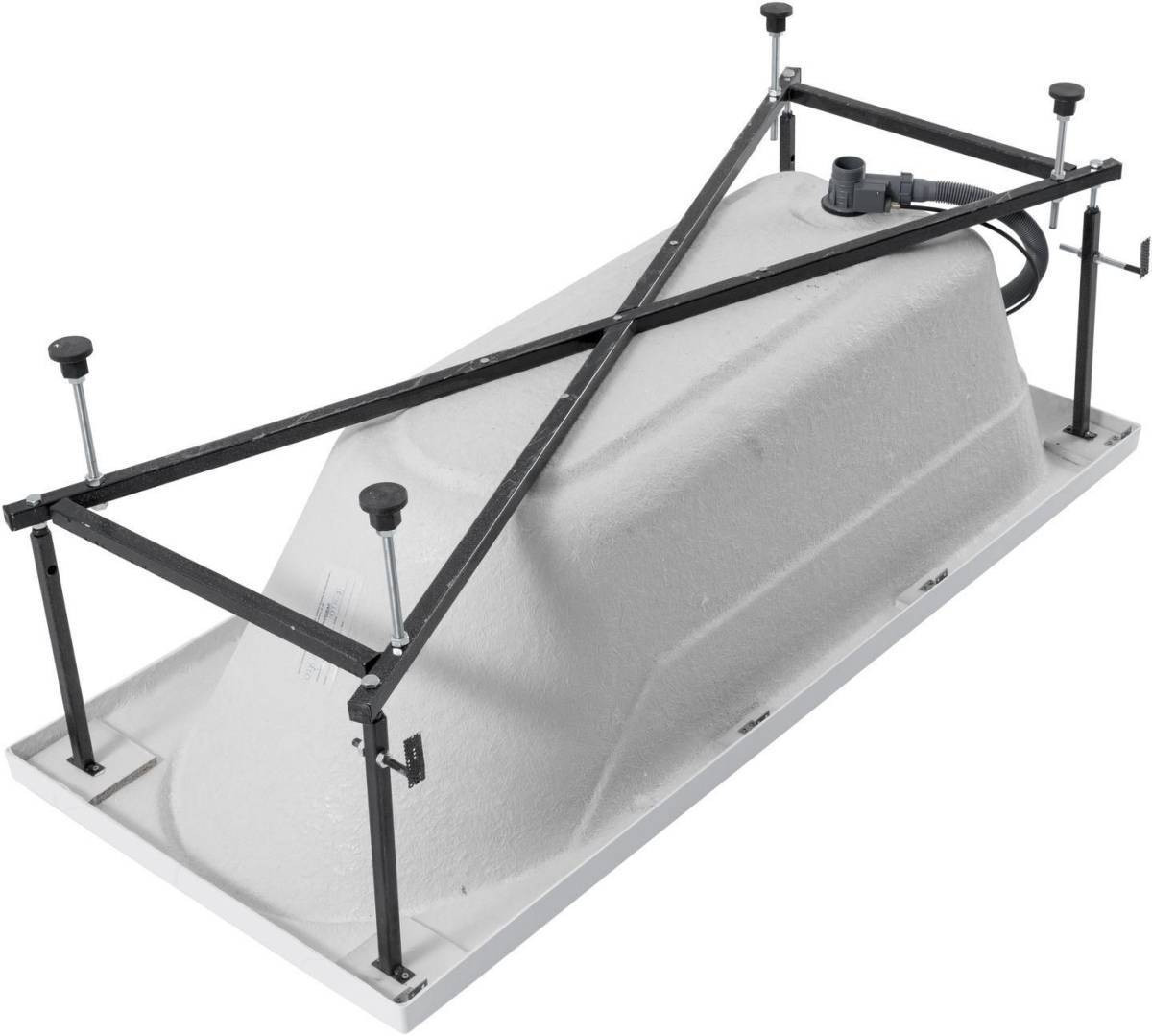 Ванна уже установлена на жесткий сварной каркас из металлического профиля. Металлические детали каркаса подвергаются трехступенчатой обработке, когда сначала профильная труба проходит абразивную зачистку на специальном станке, после чего готовые детали обрабатывают каустической содой, и, просушив, покрывают с помощью электростатического распылителя молотковой краской по металлу. Это гарантирует равномерность окрашивания и стойкость покрытия.