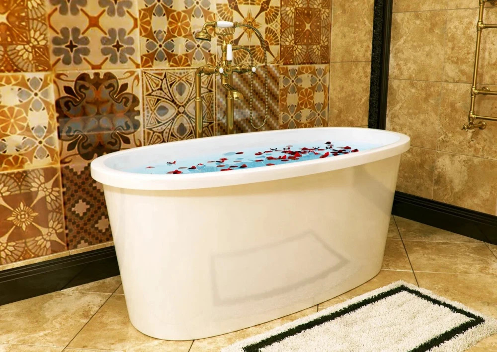 Ванна "АННА" из литьевого (искусственного) мрамора белого цвета российского производителя "ФЭМА СТИЛЬ". Классическая отдельностоящая ванна на подиуме, слив/перелив в комплект не входит. Ванна имеет эргономичную форму и изготовлена из композитного материала, обладающего низкой теплопроводностью (теплая на ощупь), повышенной механической прочностью и высоким коэффициентом шумопоглащения).
