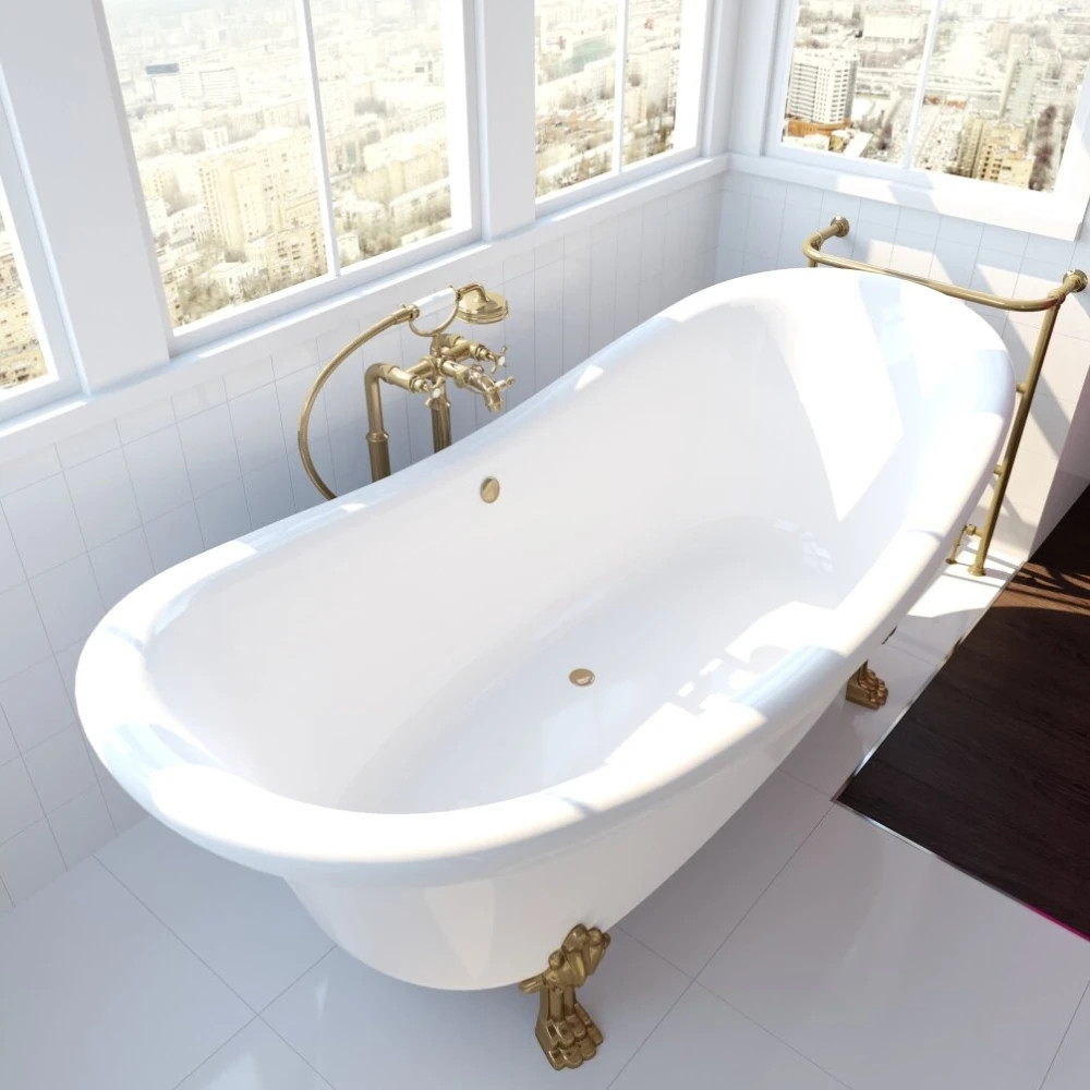 Ванна "ГАБРИЭЛЛА" из литьевого (искусственного) мрамора белого цвета российского производителя "ФЭМА СТИЛЬ". Классическая отдельностоящая ванна на опорах белого цвета, слив/перелив в комплект не входит. Ванна имеет эргономичную форму и изготовлена из композитного материала, обладающего низкой теплопроводностью (теплая на ощупь), повышенной механической прочностью и высоким коэффициентом шумопоглащения).