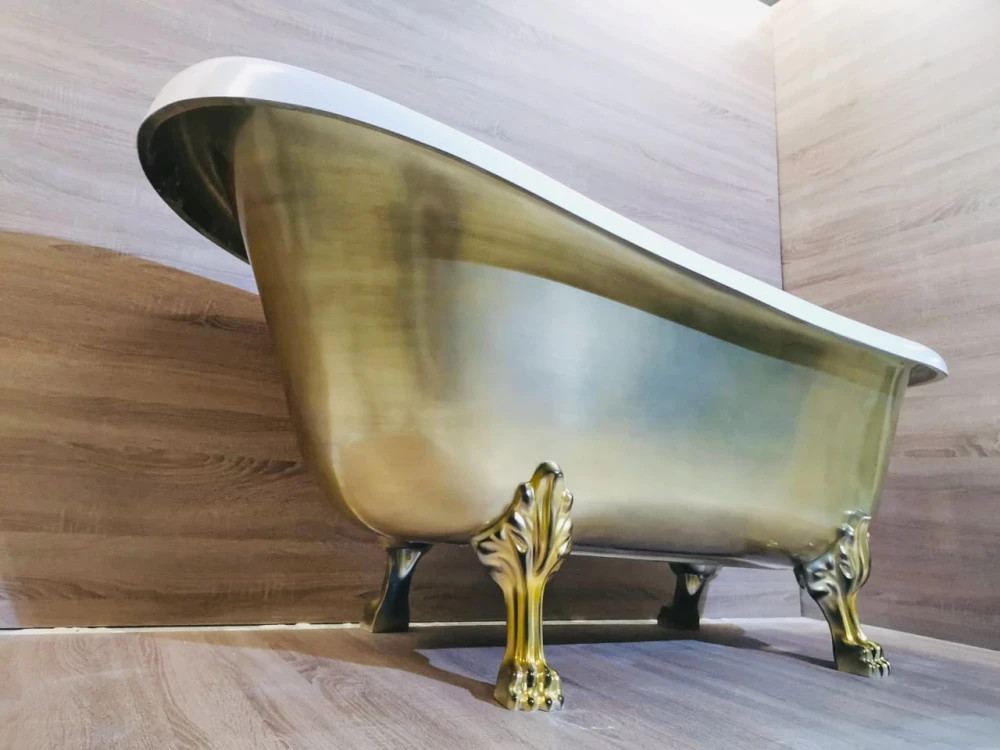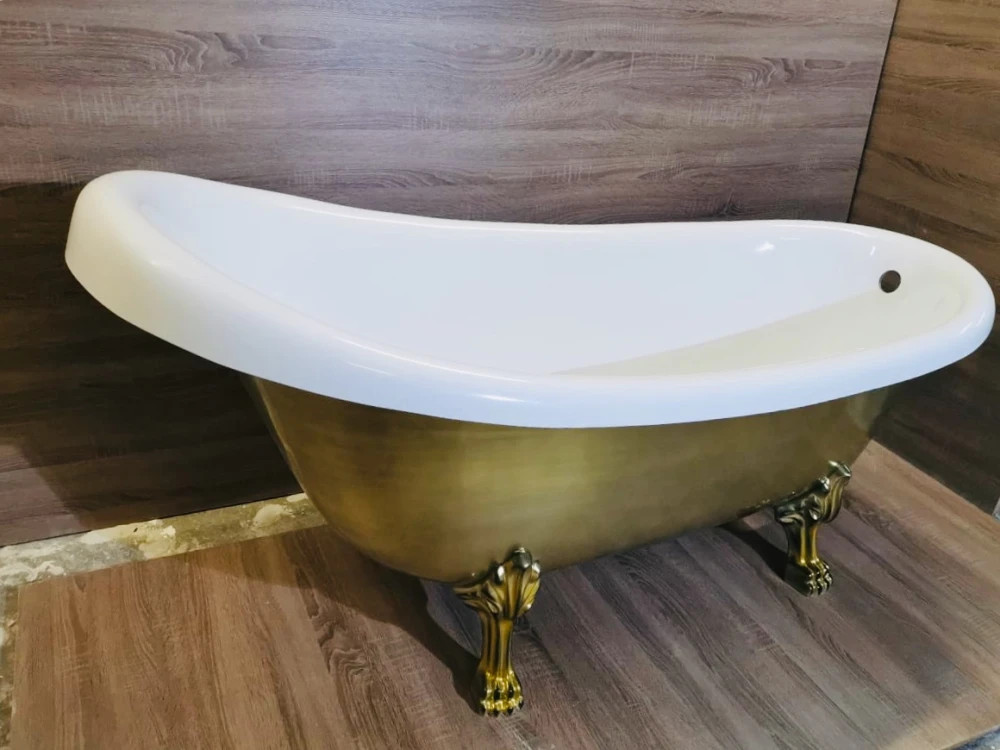 Ванна "САЛЕРНО" из литьевого (искусственного) мрамора белого цвета российского производителя "ФЭМА СТИЛЬ". Классическая отдельностоящая ванна на опорах в разных вариантах исполнения: опоры белого цвета, хром, бронза, золото. Слив/перелив в комплект не входит. Ванна имеет эргономичную форму и изготовлена из композитного материала, обладающего низкой теплопроводностью (теплая на ощупь), повышенной механической прочностью и высоким коэффициентом шумопоглащения).