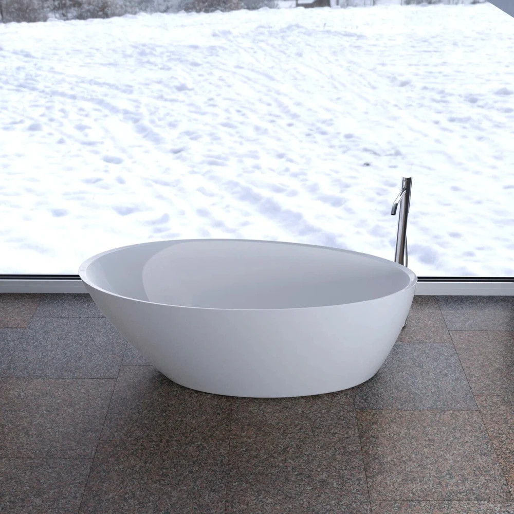 Ванна "СТЕЛЛА" из литьевого (искусственного) мрамора белого цвета российского производителя "ФЭМА СТИЛЬ". Классическая отдельностоящая ванна на подиуме, слив/перелив в комплект не входит. Ванна имеет эргономичную форму и изготовлена из композитного материала, обладающего низкой теплопроводностью (теплая на ощупь), повышенной механической прочностью и высоким коэффициентом шумопоглащения).
