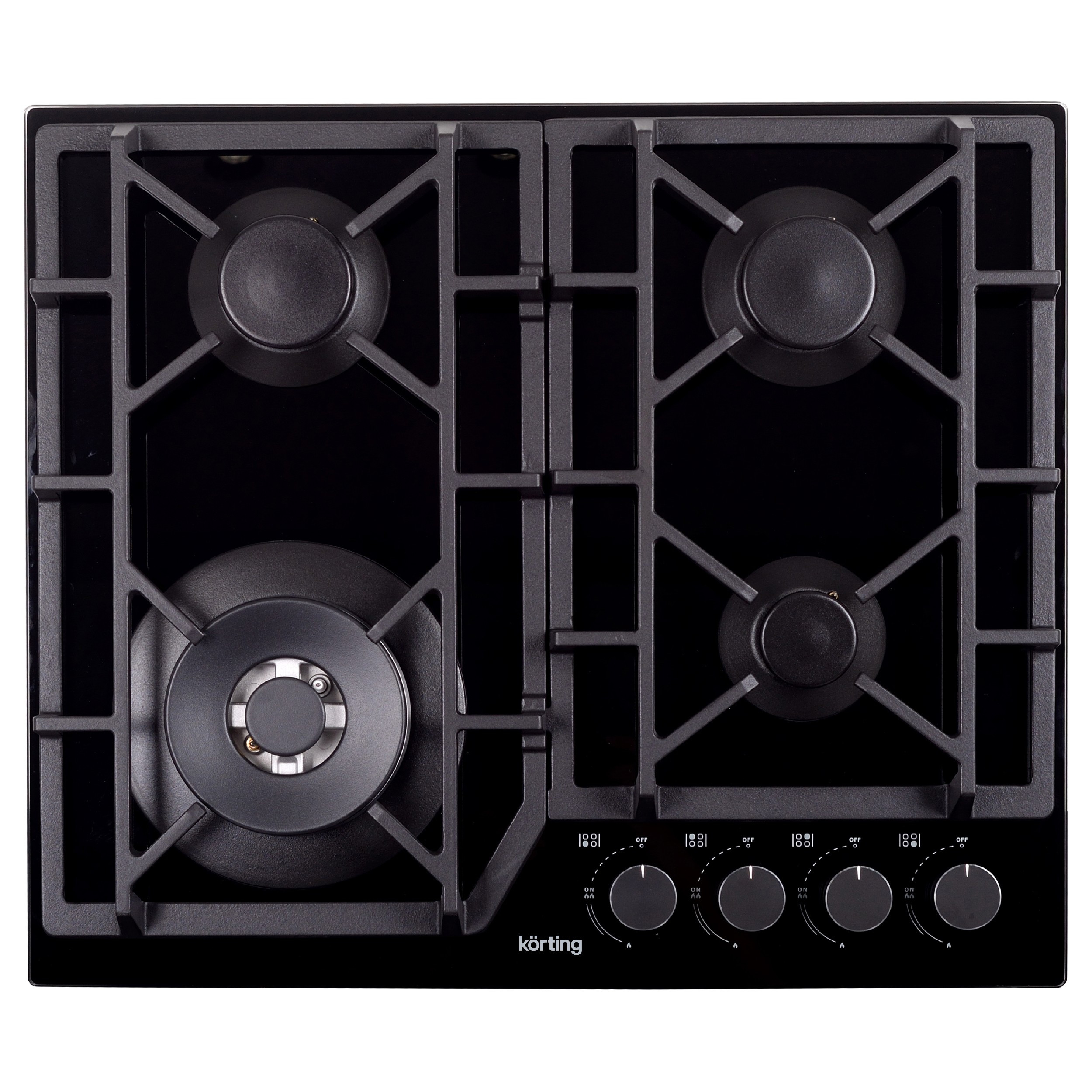 Поворотные регуляторы газовых варочных поверхностей Korting выполнены из металла, что создает профессиональный стиль и препятствует их нагреву.