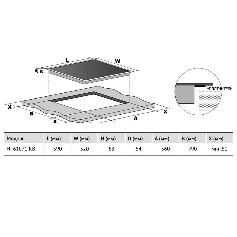 Размеры встраивания (ВхШхГ) (мм): 58x560х490