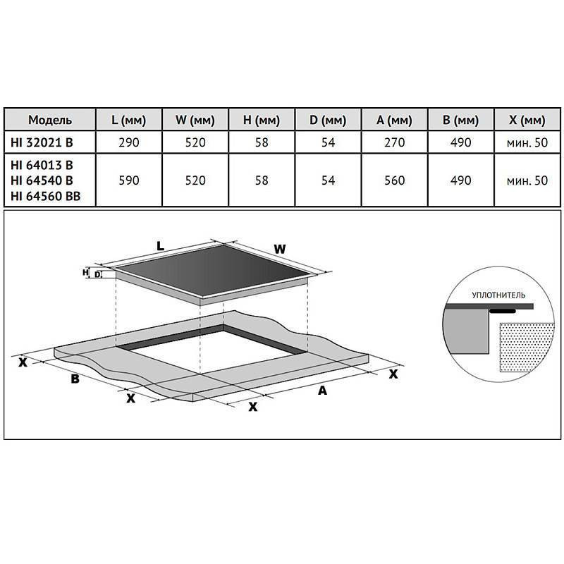 Размеры встраивания (ВхШхГ) (мм): 30x560х490