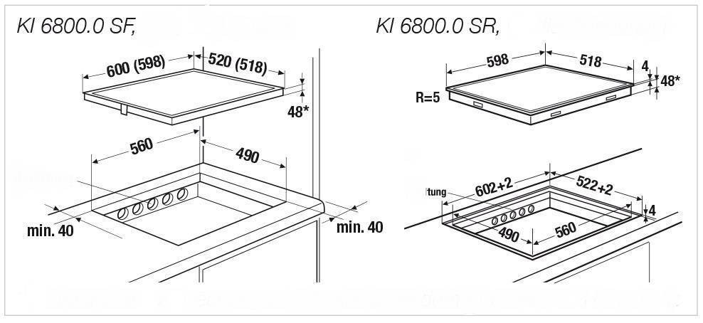 Размеры ниши для встраивания (Ш х Г): ≈ 560 х 490 мм