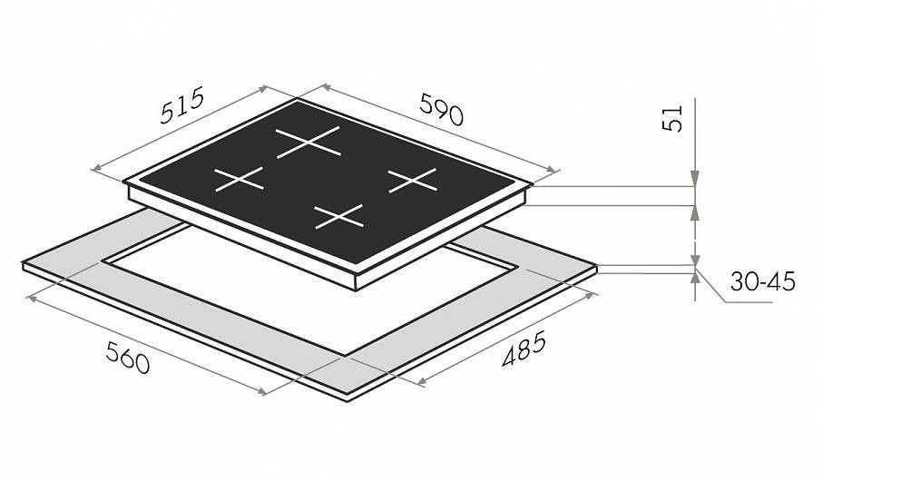 •Размеры для встраивания (ШхГ), мм: 560х485