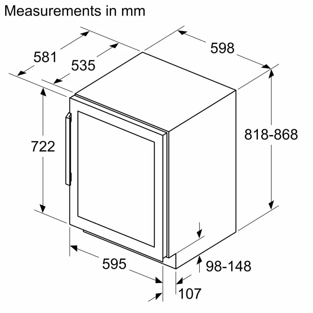Особое внимание уделено защите вина от вредных воздействий. Прозрачная стеклянная дверь оснащена защитой от УФ-лучей, что предотвращает выгорание и окисление вина. Внутри шкафа установлены три деревянные полки, которые обеспечивают надежное и удобное размещение бутылок. Винный шкаф Bosch KUW21AHG0 отличается высокой энергоэффективностью. Он относится к классу энергопотребления G (старое обозначение B, A), что говорит о его экономичности. Годовой расход электроэнергии составляет всего 130 кВтч. Устройство работает от сети напряжением 220-240 В и частотой тока 50-60 Гц. Шкаф оснащен индикацией открытой двери, которая включает световой и звуковой сигналы. Это помогает избежать непреднамеренного охлаждения вина и экономит энергию. Ручка двери выполнена в виде вертикальной накладной, что обеспечивает удобство использования. Дверной упор расположен справа.