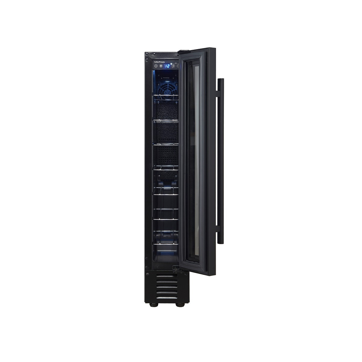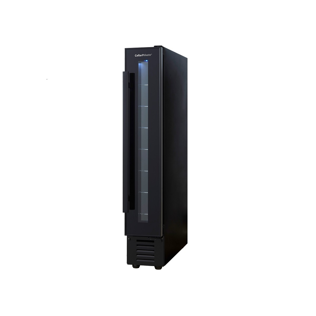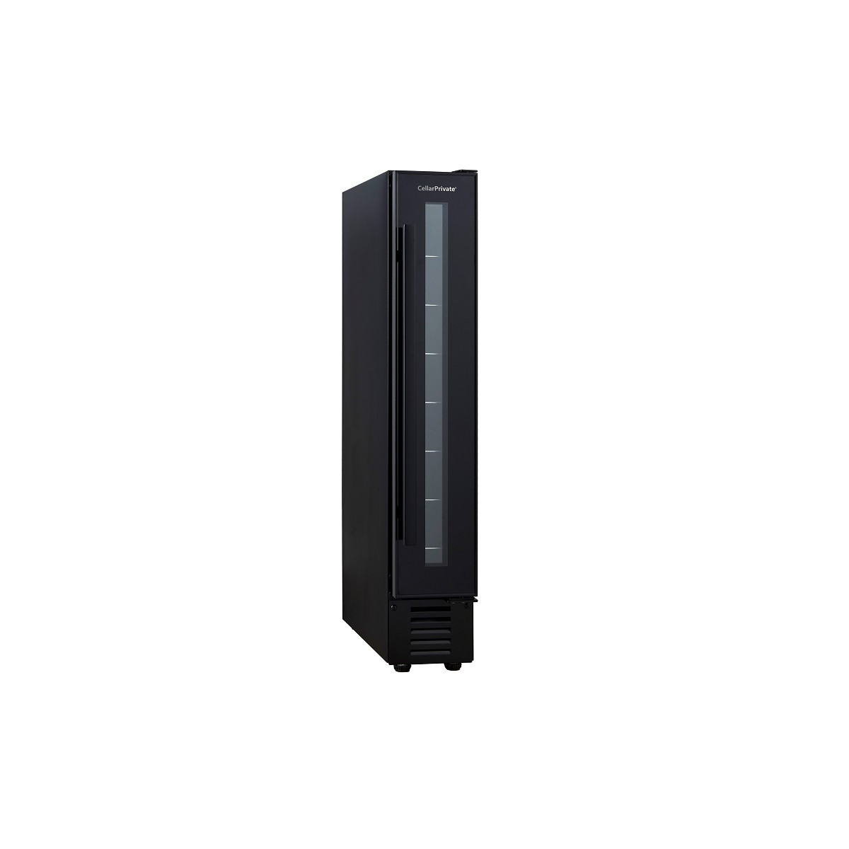 CellarPrivate CP007B — самый узкий винный шкаф вместимостью до 7 бутылок. Данная модель винного холодильника может быть встроена в кухонную мебель, идеальна для установки под столешницу, а также может быть установлена как отдельностоящая.