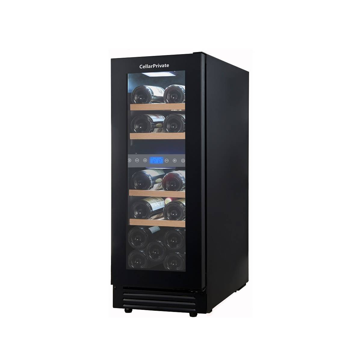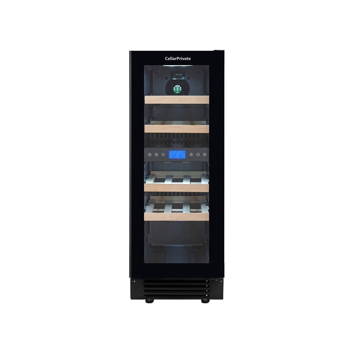 CellarPrivate CP017-2TBH (чёрная дверь со скрытой ручкой) это двухзонный винный шкаф, вместимостью до 17 бутылок. Температура выставляется в каждой зоне раздельно, что позволяет хранить одновременно красные и белые вина.