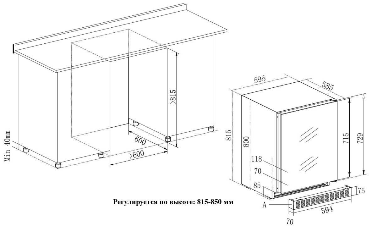 Габариты винного шкафа: Ширина 48 cм. /Высота 64 cм. /Глубина 43,5 cм.