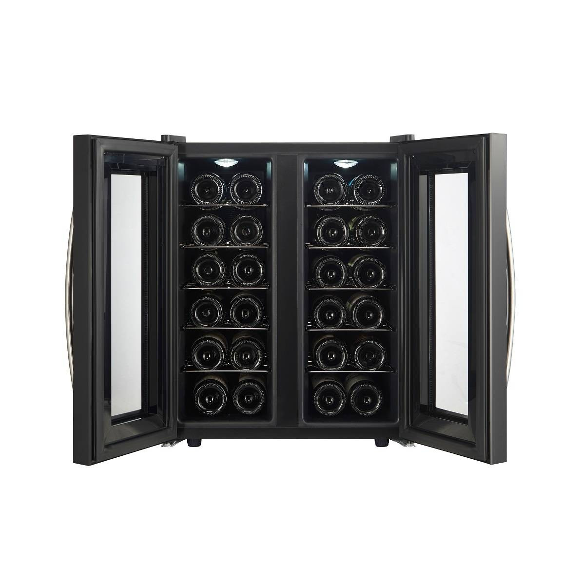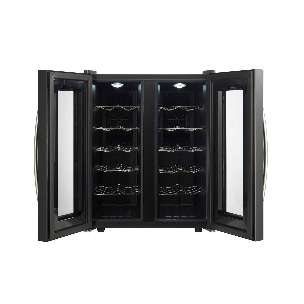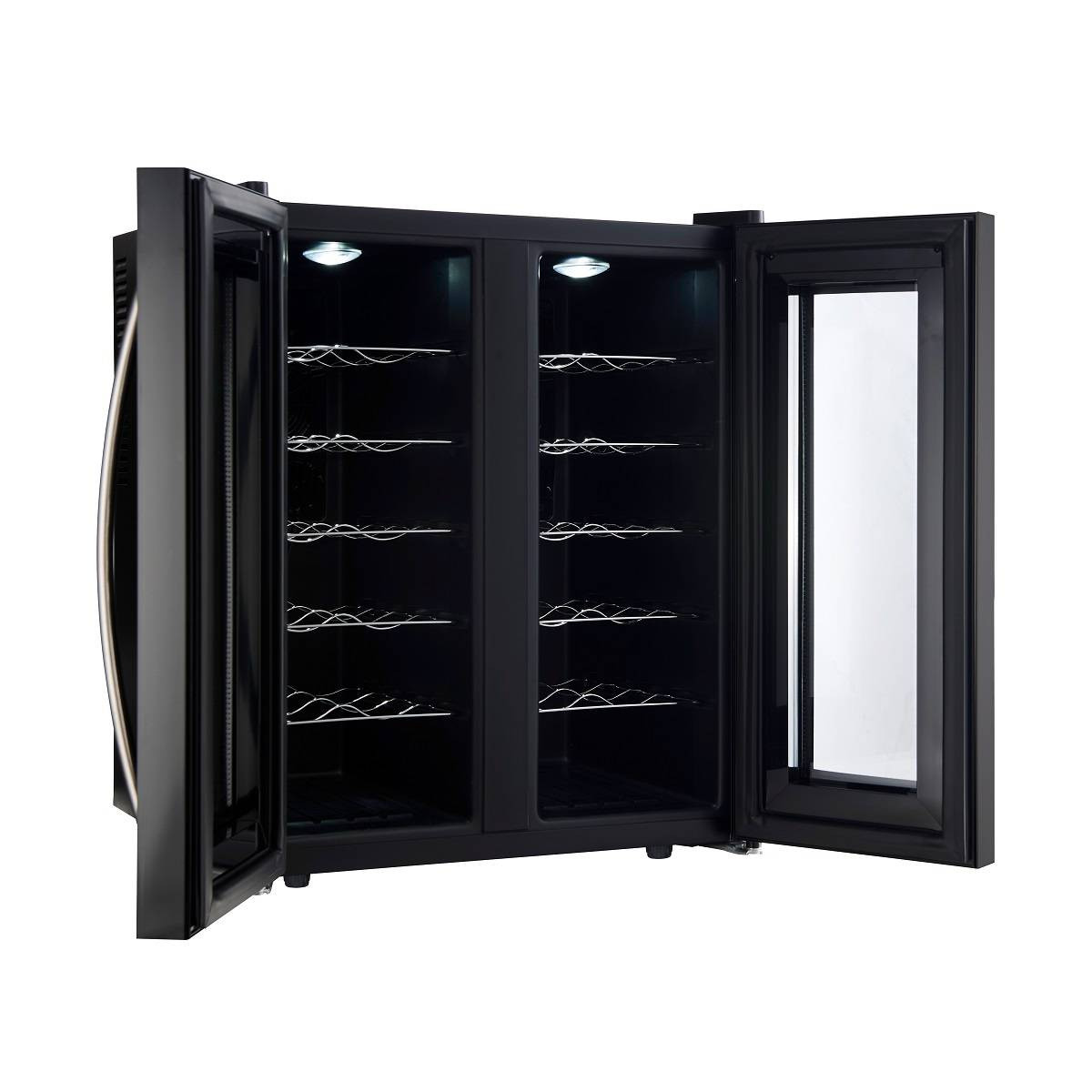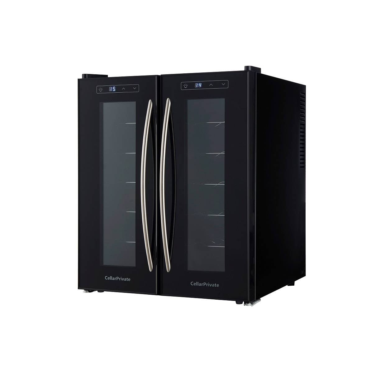 CellarPrivate CP024-2T это двух камерный винный шкаф с двумя дверцами, которые открываются нараспашку. Вместимость до 24 бутылок. Температура выставляется в каждой камере раздельно, что позволяет хранить одновременно красные и белые вина.