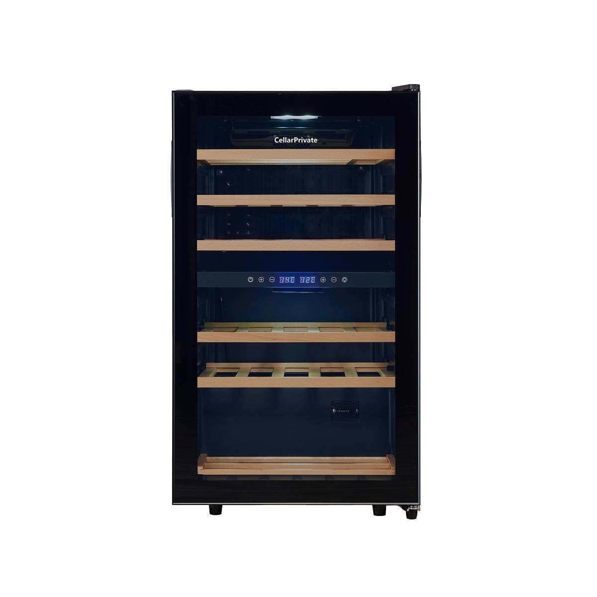CellarPrivate CP029-2T это двух камерный винный шкаф, вместимостью до 28 бутылок. Температура выставляется в каждой камере раздельно, что позволяет хранить одновременно красные и белые вина.