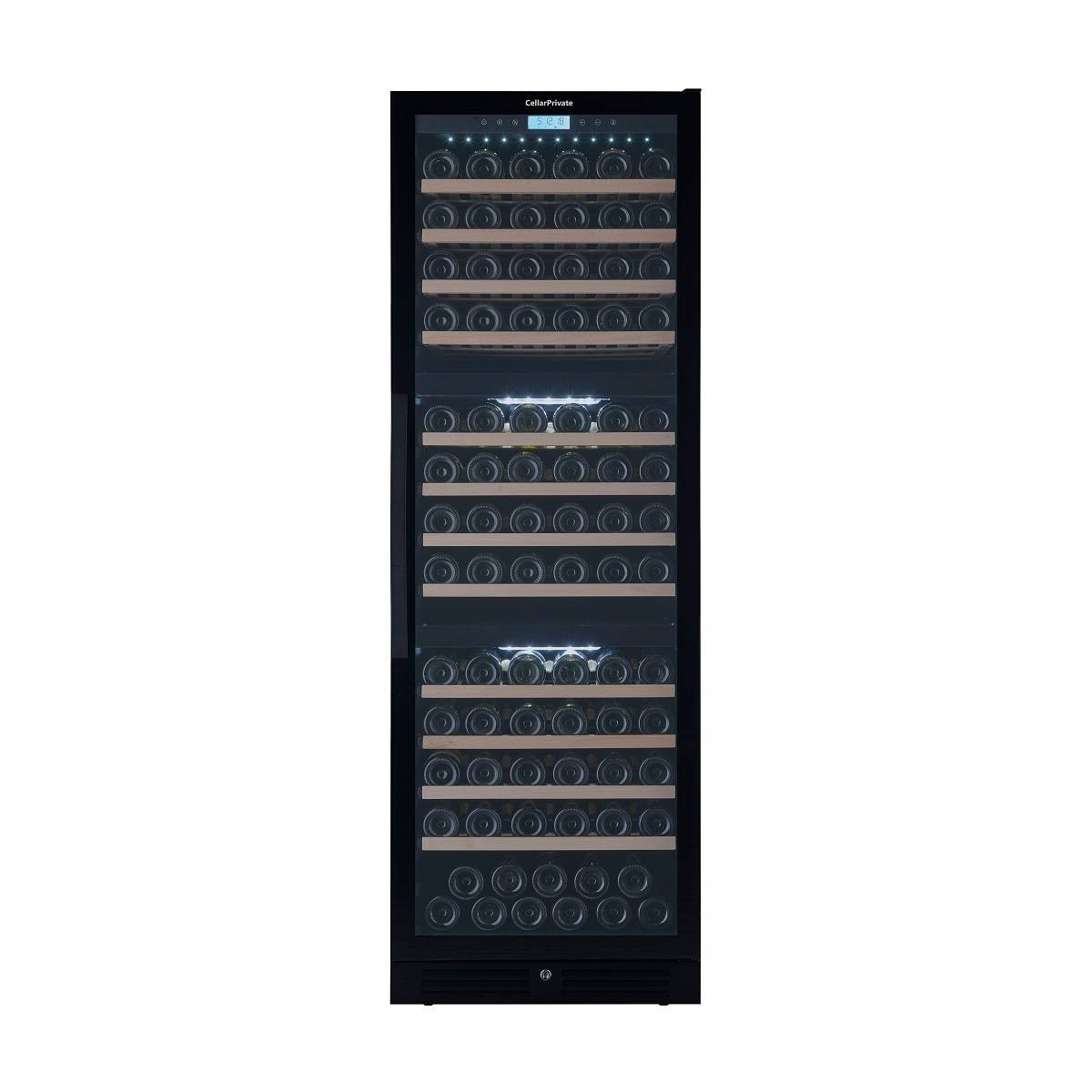 CellarPrivate CP154-3TB это трёхзонный холодильник для вина, вместимостью до 143 бутылок. Температура выставляется в каждой зоне раздельно, что позволяет хранить одновременно различные вина, включая игристые.