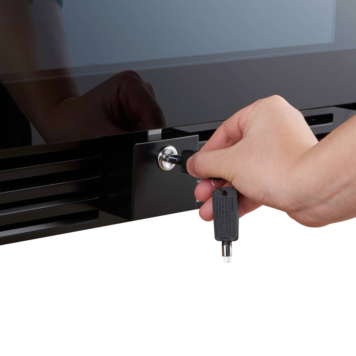 Сенсорные кнопки управления температурой и подсветкой расположены на панели за стеклянной дверцей.