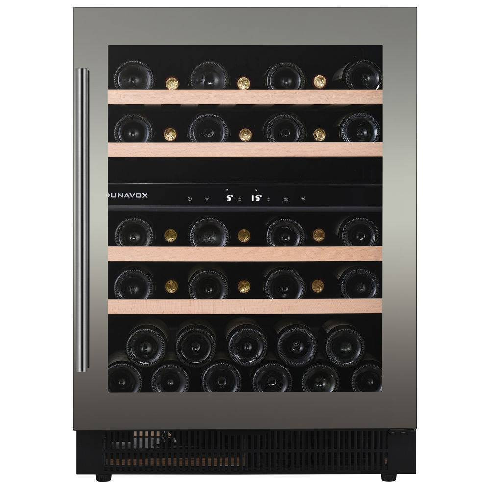 Компрессорный винный шкаф Dunavox DAUF-39.121DSS обладает средней вместимостью и способен разместить в себе до 39 бутылок. Располагаются они на выдвижных полках из массива бука. Внутреннее пространство шкафа разделено на 2 температурные зоны с возможностью настраивать каждую из них в диапазоне от +5 °C до +20 °C. Электронный термостат помогает стабильно поддерживать заданную Вами температуру. Холодильник поддерживает влажность в диапазоне 60-80%, как в настоящем винном погребе. Для дополнительного повышения влажности предусмотрен контейнер для дистиллированной воды.