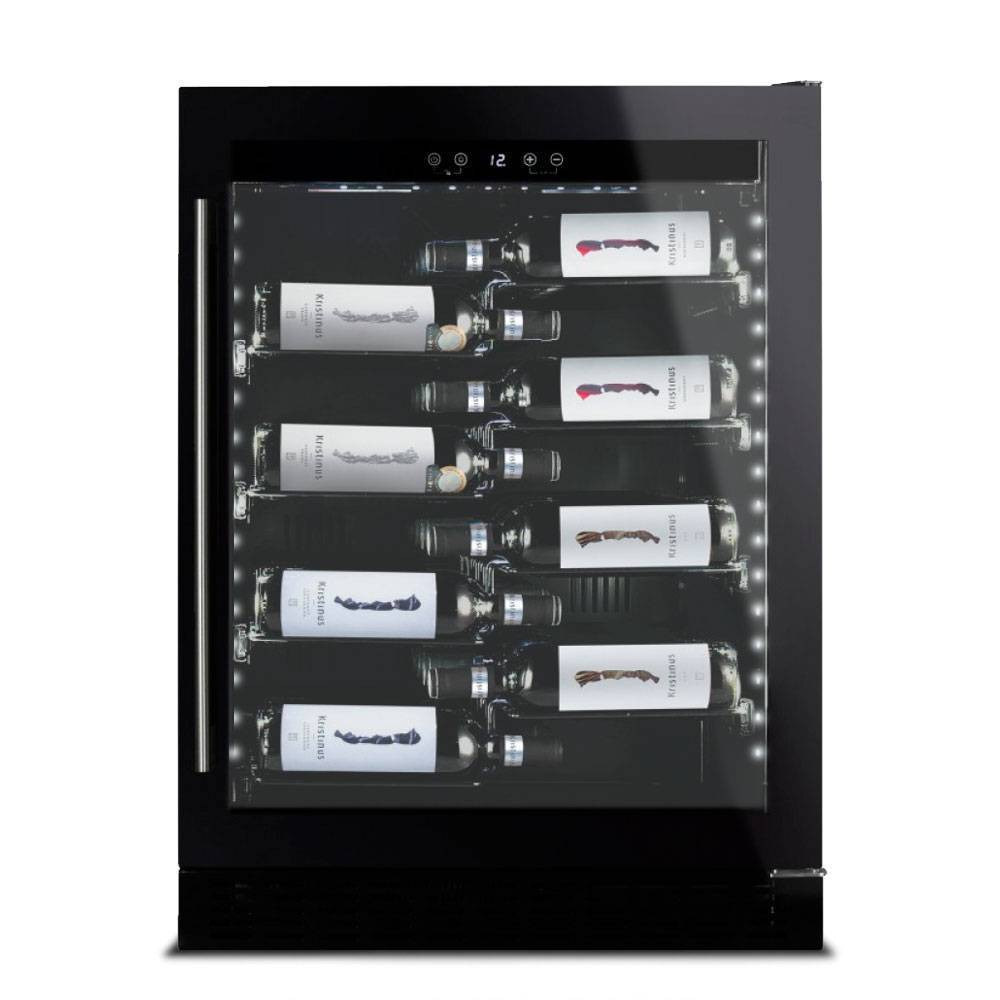 Что можно сказать о дизайне DAUF-40.138B - корпус шкафа выполнен в черном металлическом цвете, а его дверца представляет собой специальное стекло, обрамленное черной рамкой. На стекло нанесена защитная тонировка, которая не позволяет УФ-лучам попадать на вашу винную коллекцию.