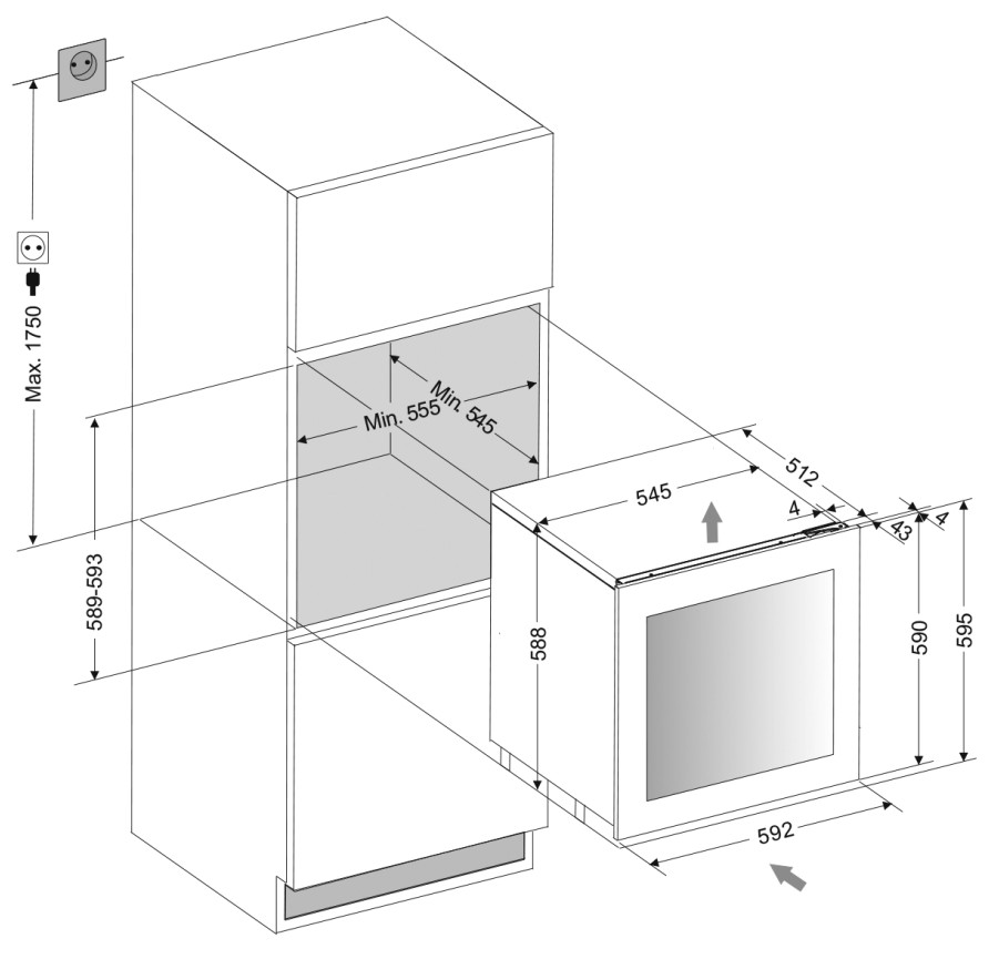 Размеры для ниши (ШхГхВ): 555х545х589-593 мм