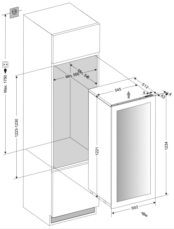 Размеры для ниши (ШхГхВ): 555х570х1223-1230 мм