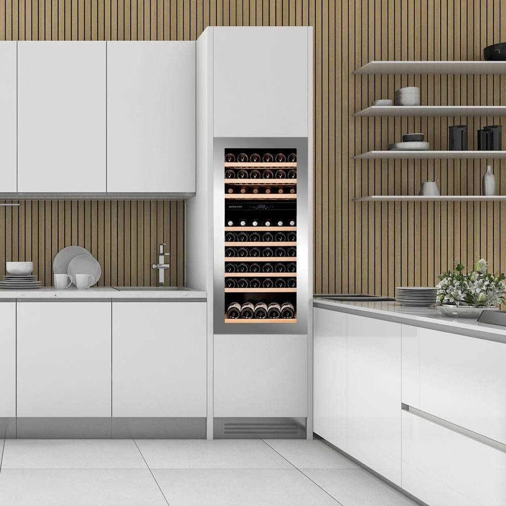 Двойное стекло с защитой от прямых УФ-лучей поддерживает качественные условия хранения вина. Встроенная система вентиляции создаёт необходимую циркуляцию воздуха для правильной работы винного холодильника
