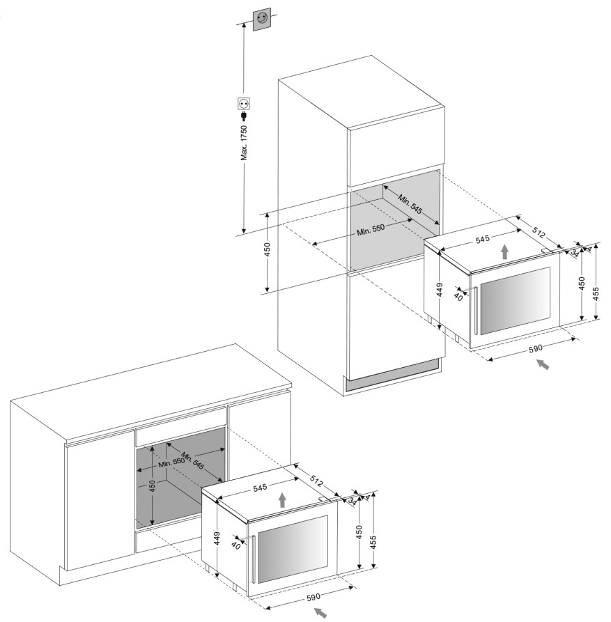 Возможность встроить: есть (и в колонну и под столешницу)
