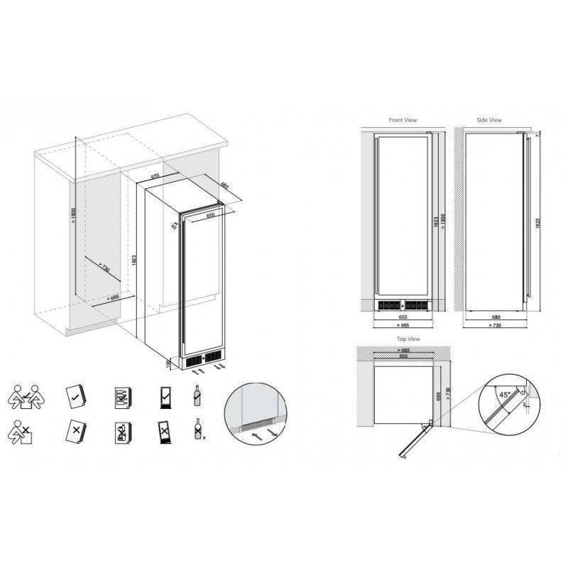 Наличие надежного замка в двери Автоматическая система разморозки Компрессор с минимальным уровнем шума в 40 дБ Электронный термостат с цифровым индикатором Гарантия 3 года Функциональные особенности Дверца шкафа выполнена из тонированного стеклопакета с защитой от УФ лучей. Регулируемый температурный диапазон от +5°C до +22°C подходит для хранения большинства сортов вин. Равномерное поддержание температуры по всему объему шкафа осуществляется внутренним вентилятором. Дверь перевешивается. Угольный фильтр служит для улучшения воздухообмена в шкафу, очищения от посторонних запахов и устранения лишней влаги. Замок на двери. Удобная панель управления обеспечивает простую и быструю установку необходимой температуры. Светодиодная подсветка.