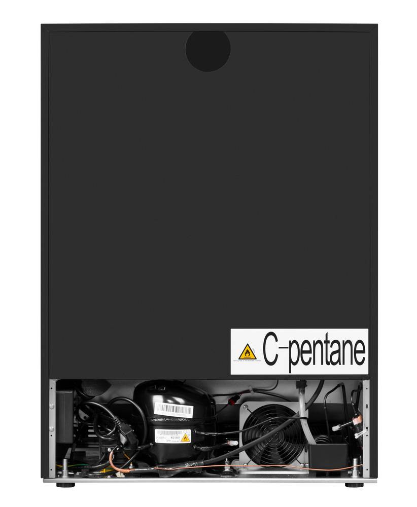 Шкаф оснащён внутренним вентилятором для равномерного распределения холодного воздуха ко всем полкам шкафа.