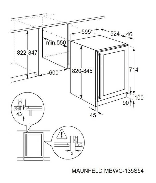 Винный шкаф предназначен для встройки под столешницу.