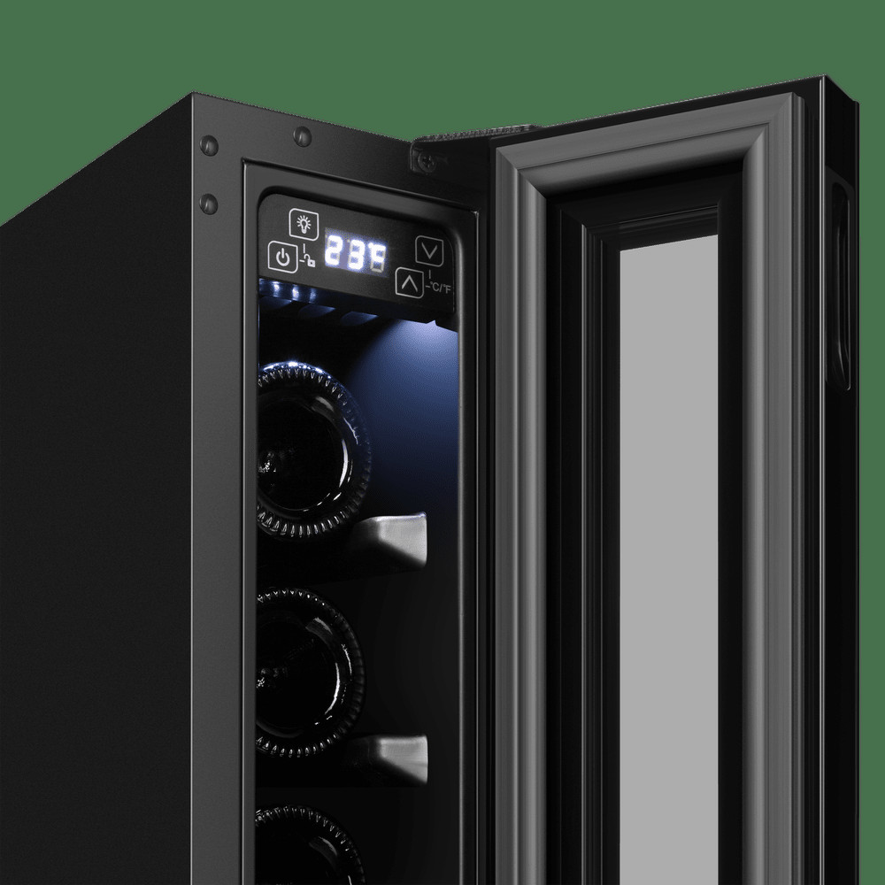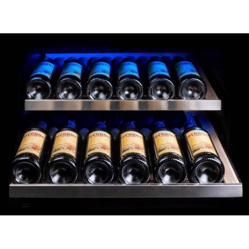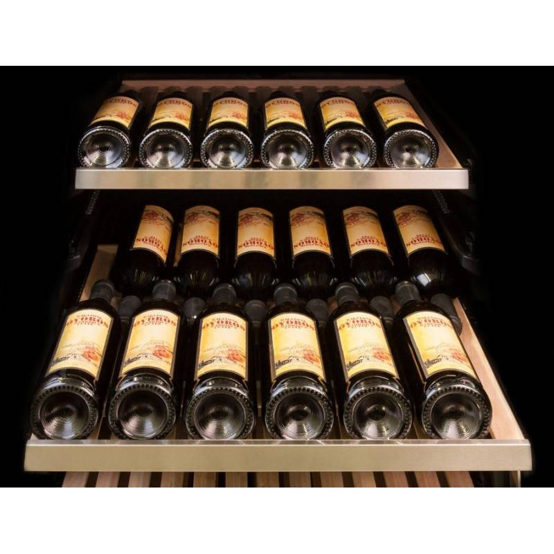 Изысканный дизайн модели делает её абсолютным выбором большинства: корпус выполнен из металла, окрашенной в чёрный цвет. Современная технология освещения зоны позволит вам в любое время эффектно продемонстрировать вашу винную коллекцию гостям. Каждая деталь модели гармонично дополняет друг друга, делая винный шкаф универсальным под любые стили интерьера.