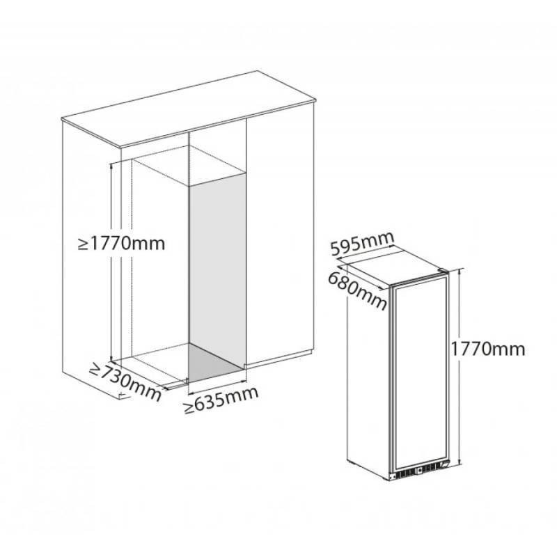 Шкаф оснащён внутренним вентилятором для равномерного распределения холодного воздуха ко всем полкам шкафа.