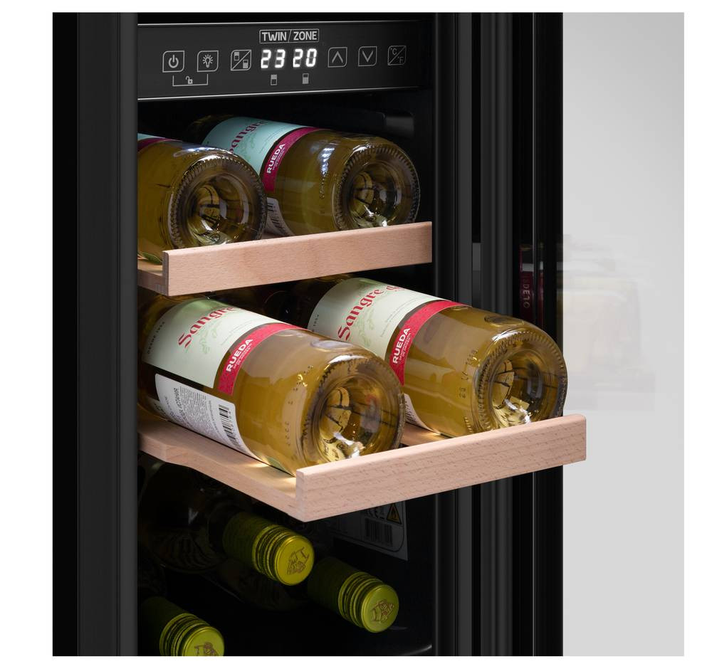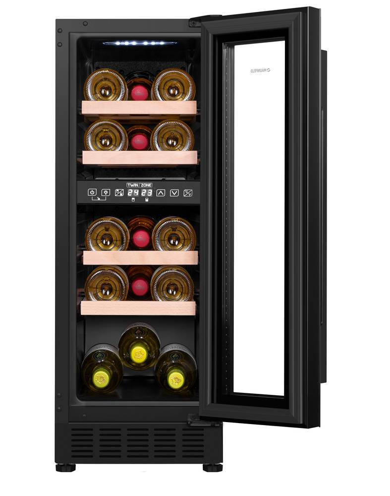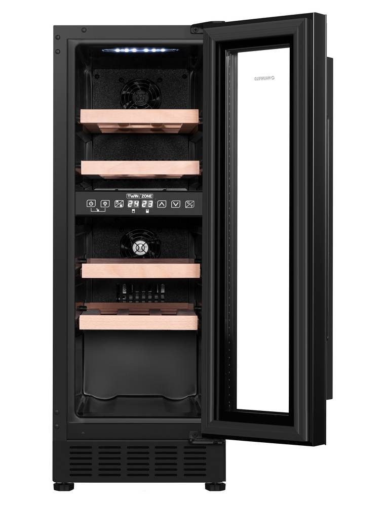 Шкаф имеет две зоны, для каждой из них можно задать свой режим охлаждения — это актуально для тех, кто планирует хранить дома разные виды напитка: красное, белое, шампанское.