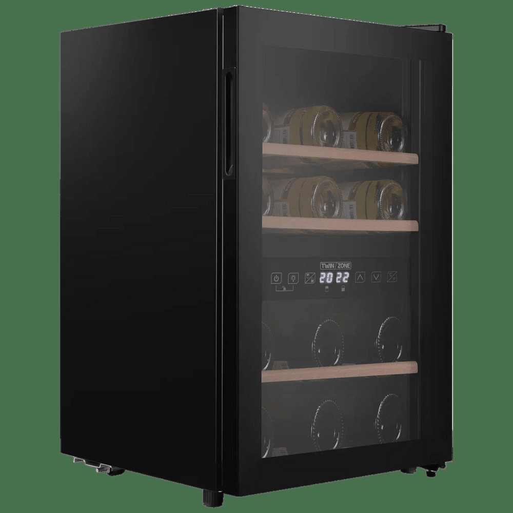 Шкаф имеет две зоны, для каждой из них можно задать свой режим охлаждения — это актуально для тех, кто планирует хранить дома разные виды напитка: красное, белое, шампанское.