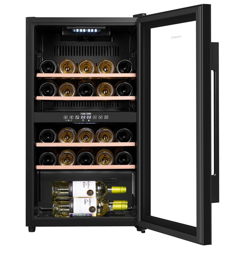 Шкаф имеет две зоны, для каждой из них можно задать свой режим охлаждения — это актуально для тех, кто планирует хранить дома разные виды напитка: красное, белое, шампанское.