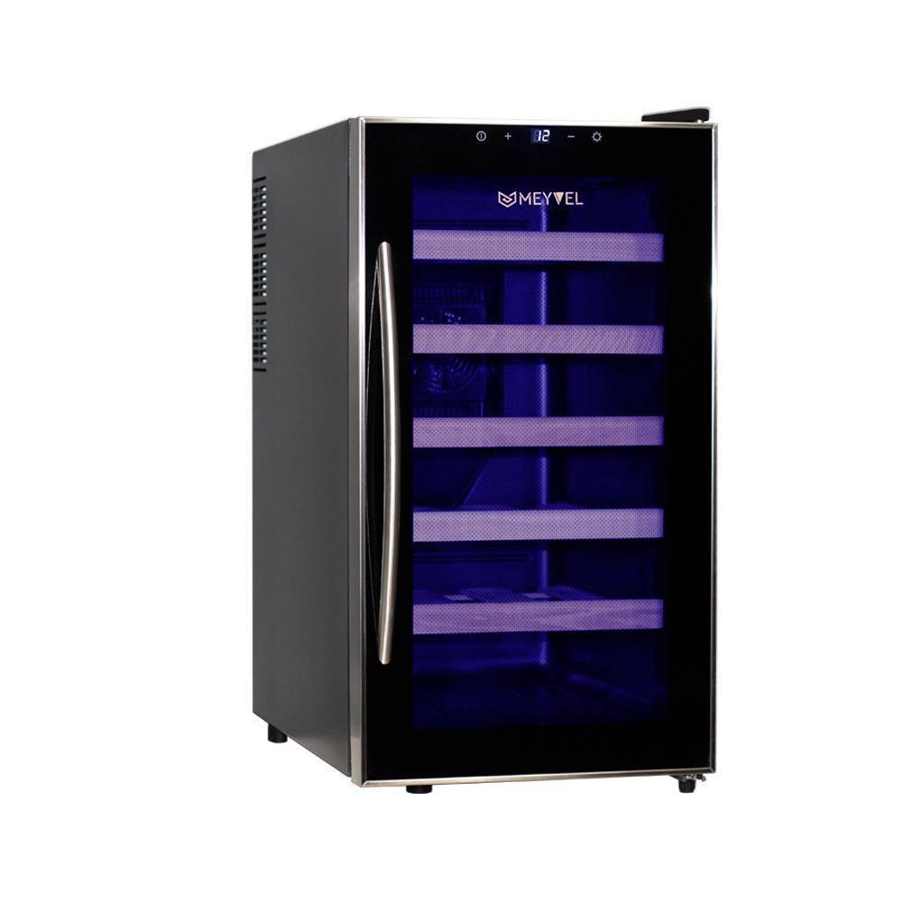 Термоэлектрический винный шкаф Meyvel MV18-BF1 (easy) обладает средней вместимостью и способен разместить в себе до 18 бутылок. Располагаются они на полках из массива бука. Внутреннее пространство шкафа имеет одну температурную зону с возможностью настраивать её в диапазоне от +10 °C до +18°C. Электронный термостат помогает стабильно поддерживать заданную Вами температуру. Холодильник поддерживает влажность в диапазоне 60-80%, как в настоящем винном погребе.