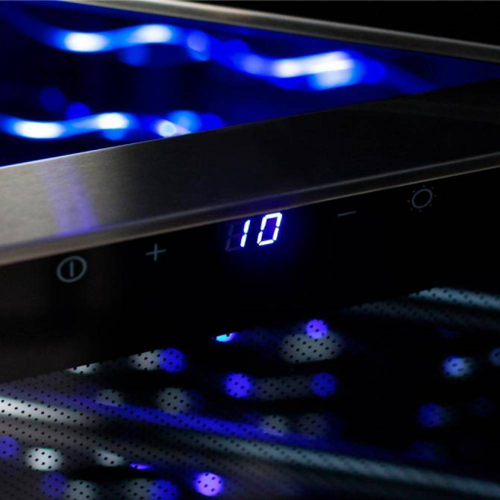 Двойное стекло с защитой от прямых УФ-лучей поддерживает качественные условия хранения вина.