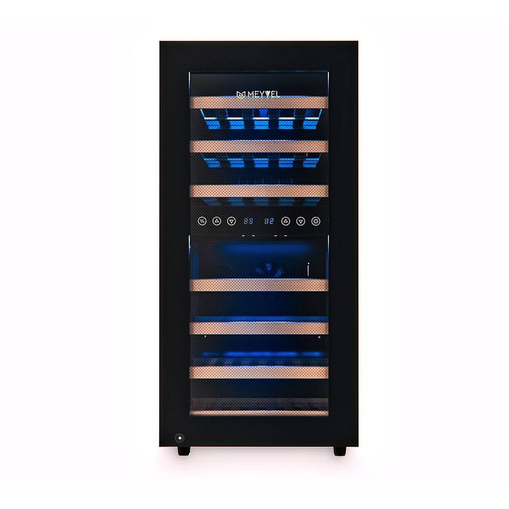Равномерное охлаждение содержимого шкафа достигается благодаря качественной циркуляции воздуха. С помощью современной сенсорной панели управления Вы сможете быстро и легко управлять всеми функциями шкафа. Практически бесшумная работа винного шкафа Meyvel MV33-KBF2 достигается благодаря установленному современному и энергоэффективному компрессору. Модель оснащена многоступенчатой системой гашения вибраций, обеспечивая полный покой Вашей винной коллекции.