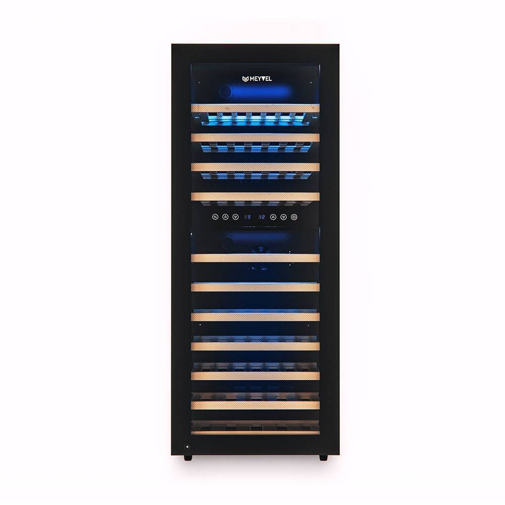 Равномерное охлаждение содержимого шкафа достигается благодаря качественной циркуляции воздуха. С помощью современной сенсорной панели управления Вы сможете быстро и легко управлять всеми функциями шкафа. Практически бесшумная работа винного шкафа Meyvel MV73-KBF2 достигается благодаря установленному современному и энергоэффективному компрессору. Модель оснащена многоступенчатой системой гашения вибраций, обеспечивая полный покой Вашей винной коллекции.