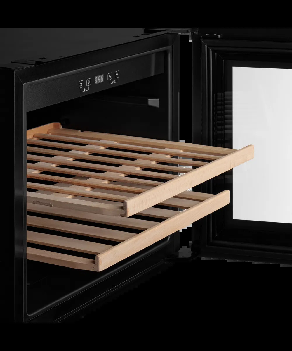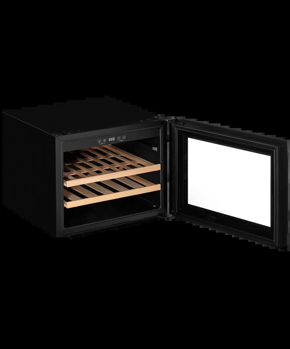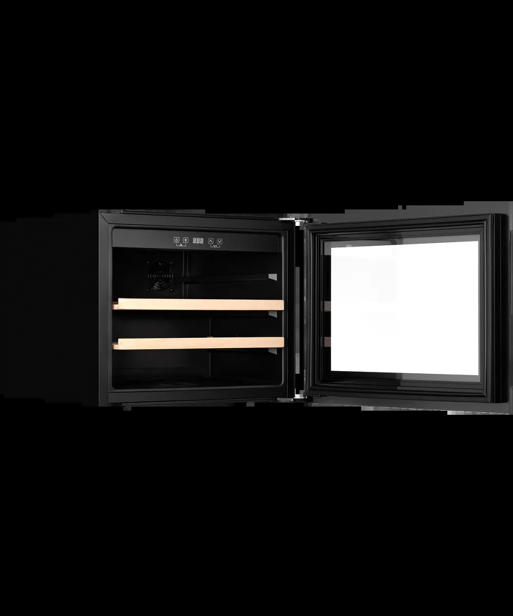Общие данныеКоллекция High-TechОбъем 62 лШирина, см 59Высота, см 45.5Глубина, см 55.5Страна производства КИТАЙОсобенностиМатериал двери стеклоНаправление открывания дверей направоПеренавешиваемые двери нетПодсветка внутренней камеры даТип освещения LEDТочность настройки температуры 1 градусРазмораживание капельная системаЭнергоэффективностьКлиматический класс SN/N/STЭнергопотребление в год 135 кВтБезопасностьЗащита от детей даУправлениеТип управления электронныйОсновная информацияМаксимальный ур-нь шума 40 дБОткрытие двери механическоеДиапазон регулировки температуры 5−20°CЦвет чёрныйКол-во полок 2Вместимость 28 бутылокКол-во температурных зон 1Материал полок деревоДополнительные функцииИндикация температуры даИндикация включения даРежим экономии энергии нетУстановкаРазмеры встраивания В/Ш/Г 450×560×550ПреимуществаДисплей LEDЗащитное покрытие от УФ даТип компрессора стандартныйКомплектацияДлина сетевого шнура 150 см