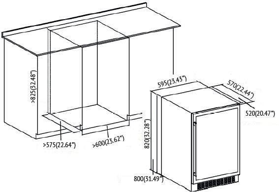 Размеры встраивания В/Ш/Г 825×600×575