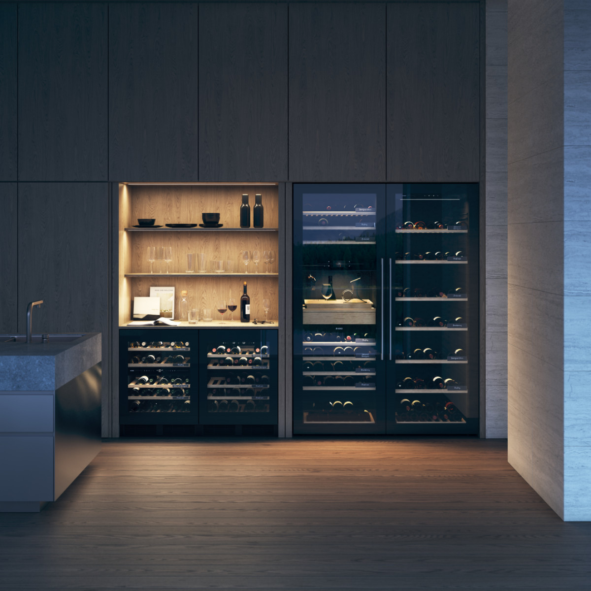 Комфортный девайс для хранения и быстрой подачи охлаждённого до нужной температуры вина. Большие размеры холодильников, их качество и возможности создания идеальных условий хранения и комфорт сервирования позволяют использовать их в лучших ресторанах мира. На разделительных перегородках расположены дисплеи с цифровыми показателями. Дверь с трёхслойными стёклами имеет защиту от ультрафиолетового излучения, а также сигнализацию, если более 10 минут она не закрыта.