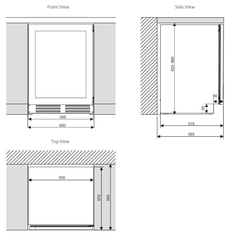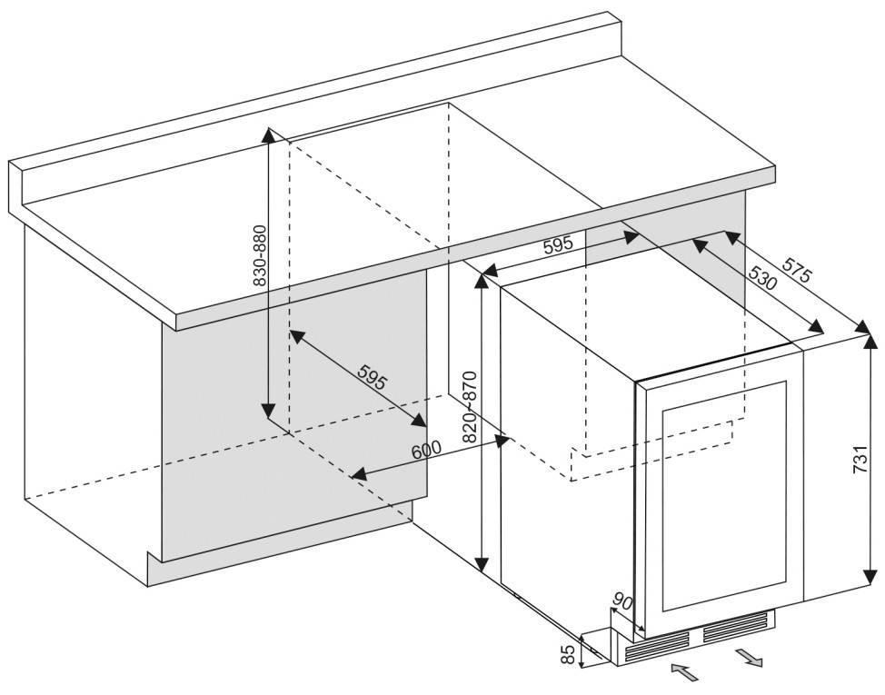Размеры ниши (ШхГхВ): 600х595х830 мм