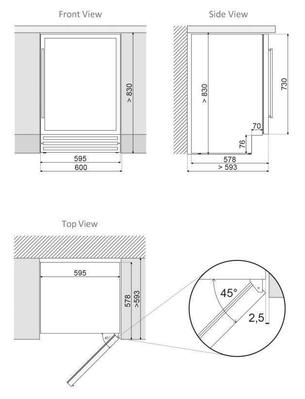 Размеры ниши (ШхГхВ): 600х590х830 мм
