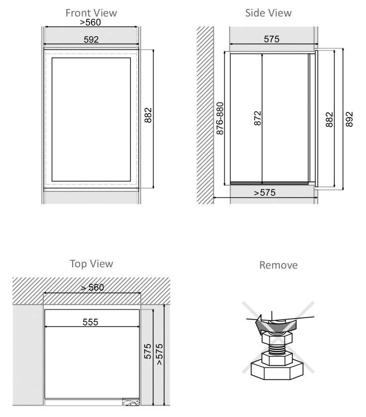 Размеры ниши (ШхГхВ): 560х559х876 мм