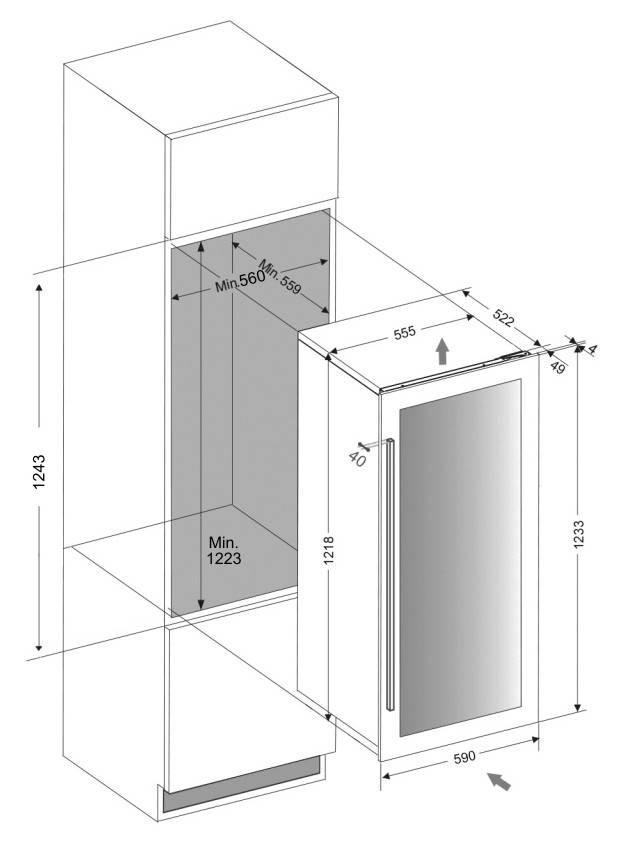 Размеры ниши (ШхГхВ): 560х572(с фасадом)х1223 мм