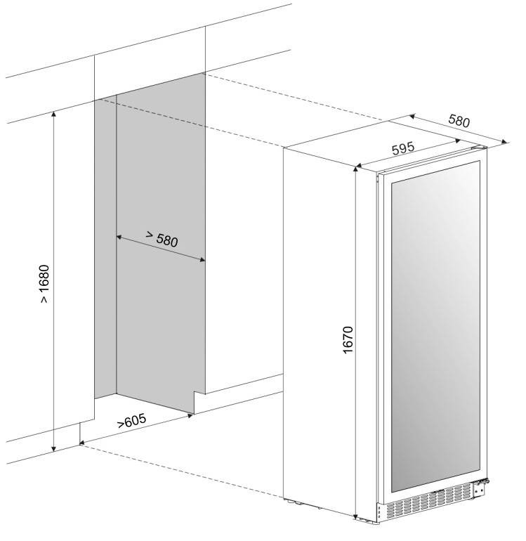 Размеры ниши (ШхГхВ): 605х590х1685 мм