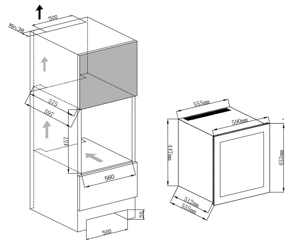 Размеры ниши (ШхГхВ): 560х575х457 мм