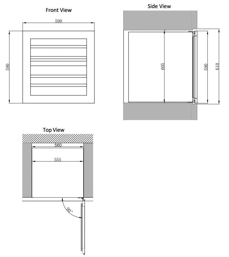 Размер двери (ШхВ): 590х590 мм